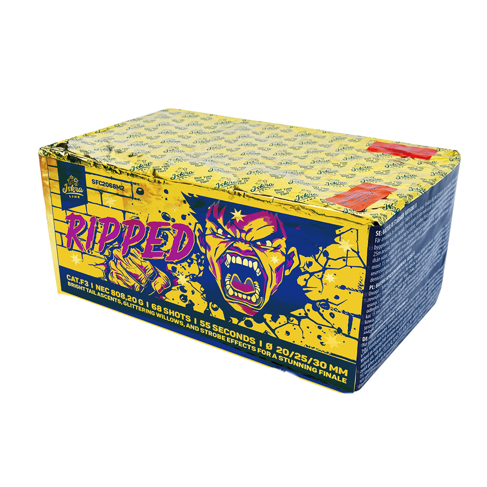 Mixed showbox with color, gold and strobe effects,followed by fanshape salvos of glittering willows and a crackling willow finale.