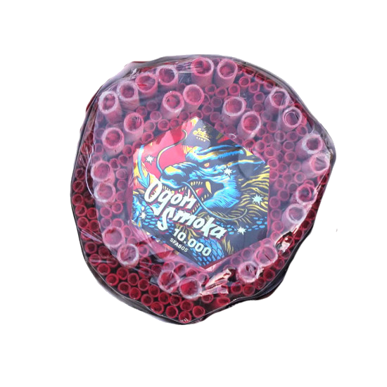 Traditionelle chinesische „Celebration Cracker“-Knallkette im „10.000“er-Format. Die Kette besteht aus Blitzknallern in 2 verschiedenen Größen, sowie einem Bündel aus großen Blitzknallern in der Mitte als Finale.